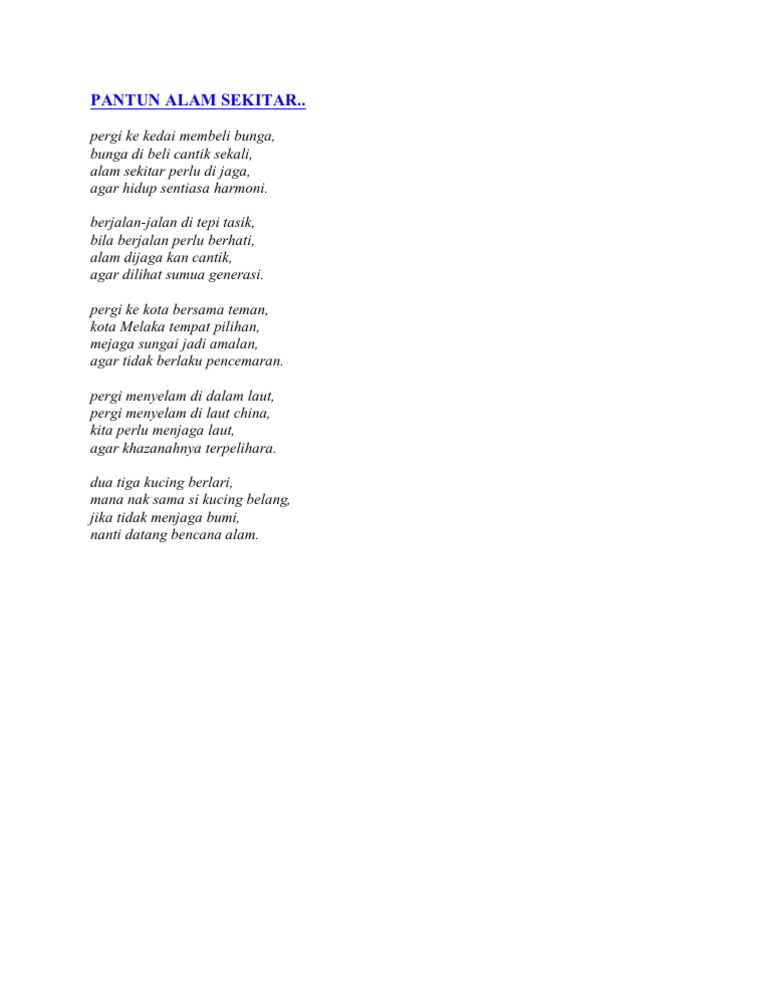 Pantun Cintai Alam Sekitar Pdf